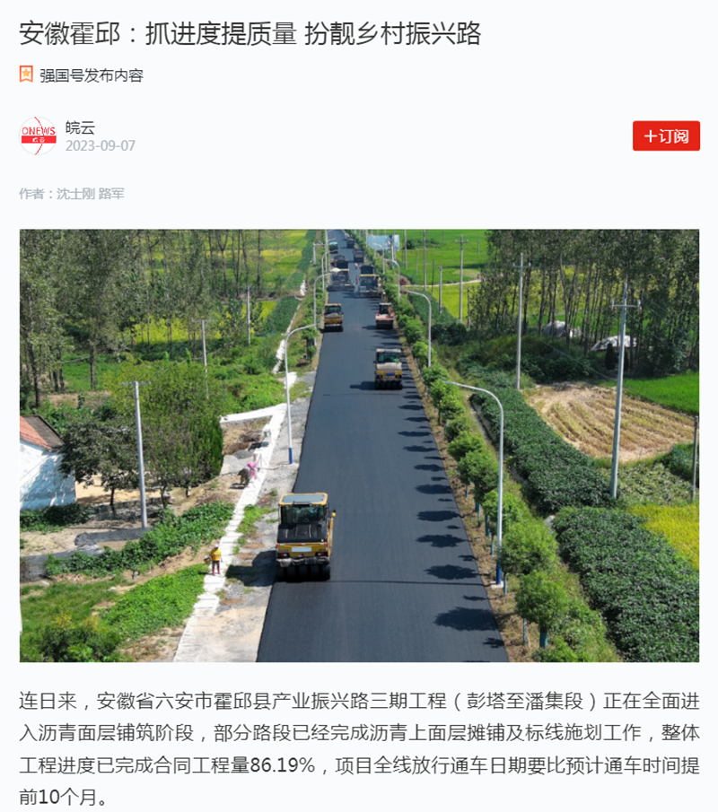 “工程項(xiàng)目啟動(dòng)以來(lái),建設(shè)單位霍邱縣交通部門(mén)始終在沿線鄉(xiāng)鎮(zhèn)協(xié)調(diào)動(dòng)遷、桿線遷移等方面工作大力支持,建設(shè)過(guò)程中我們施工單位克服困難、頑強(qiáng)拼搏、科學(xué)務(wù)實(shí),逐個(gè)解決問(wèn)題。同時(shí)將安全放在首要位置,緊抓工程進(jìn)度,把好質(zhì)量關(guān)。本期工程即將通車,屆時(shí)將給沿線百姓生活帶來(lái)便捷,為鄉(xiāng)村振興出一份力”,項(xiàng)目負(fù)責(zé)人孫成好介紹說(shuō)。
