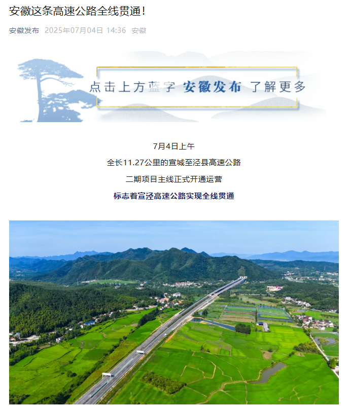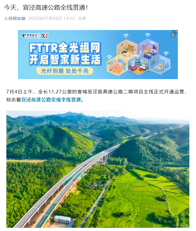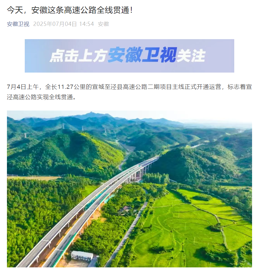 宣城?涇縣 公司參建的這條高速公路通車放行 人民網(wǎng)、央廣網(wǎng)等多家媒體關(guān)注報(bào)道