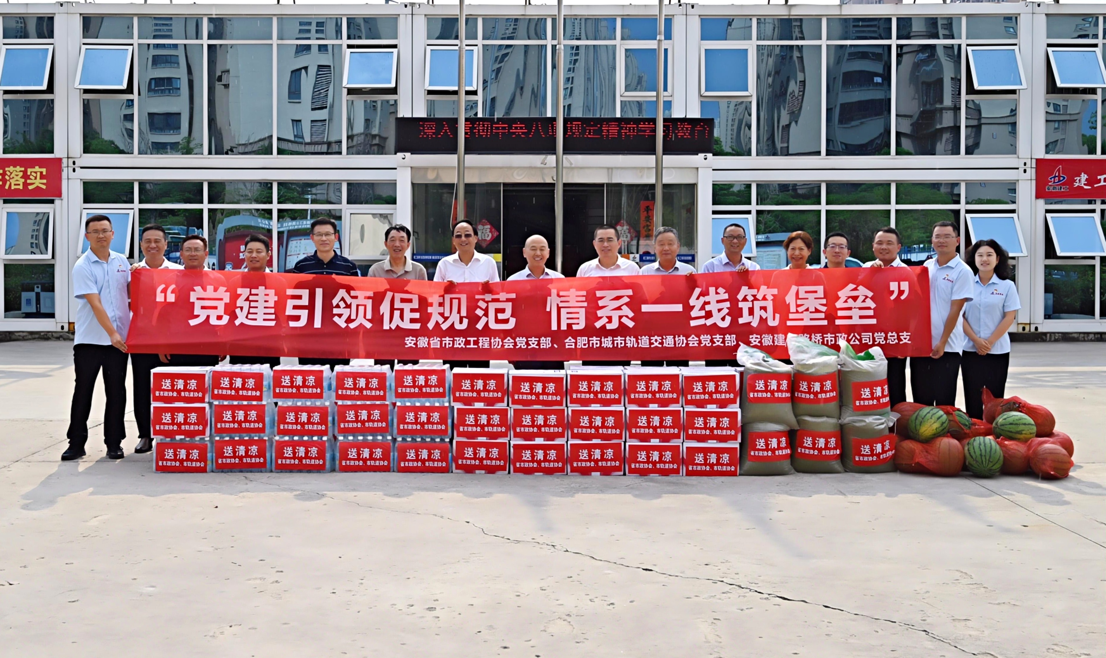 8月5號(hào)下午,安徽省市政工程協(xié)會(huì)黨支部書記、會(huì)長王斌,合肥市城市軌道交通協(xié)會(huì)黨支部書記、會(huì)長汪志成一行到合肥新橋機(jī)場S1線先行段項(xiàng)目開展“送清涼”慰問,向高溫下堅(jiān)守崗位的項(xiàng)目職工致以誠摯的問候和深切的關(guān)懷,囑咐大家要科學(xué)統(tǒng)籌施工安排,落實(shí)防暑措施,在確保施工安全和工程質(zhì)量的前提下,共同為如期完成目標(biāo)任務(wù)努力。