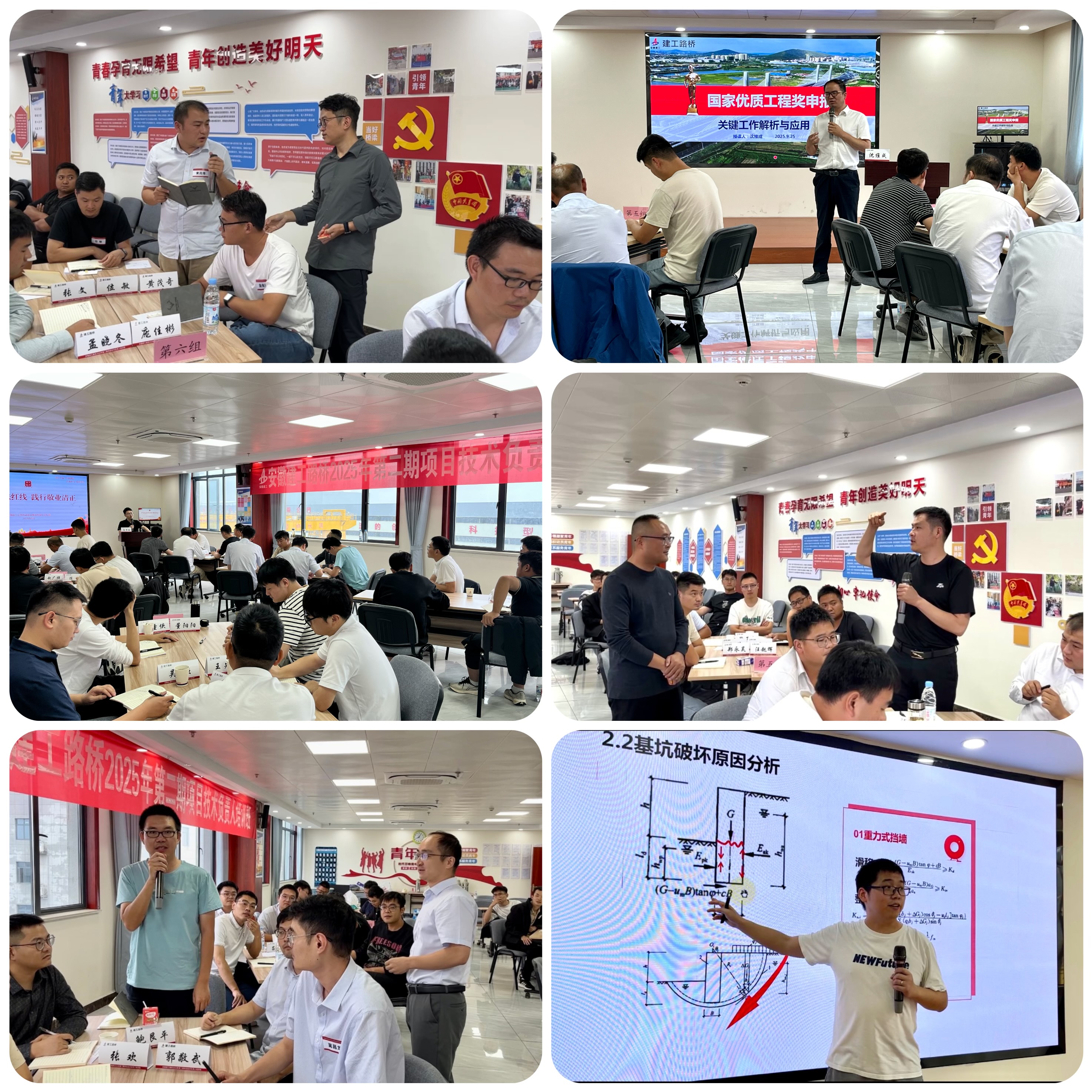 培訓(xùn)班完全采用內(nèi)部開發(fā)課程,包括施工工法選題與申報、國家優(yōu)質(zhì)工程獎申報、基坑工程常見病害分析及支護結(jié)構(gòu)設(shè)計、市政工程道路標(biāo)準(zhǔn)化施工、施工技術(shù)助產(chǎn)增效、廉潔風(fēng)險防范、法律風(fēng)險防范以及通用管理課程等。培訓(xùn)強調(diào)一線典型實戰(zhàn)案例探討,深入剖析原因,通過場景重現(xiàn)、主題討論、分享點評等形式,促進參訓(xùn)學(xué)員間互動交流與經(jīng)驗傳承,有效幫助項目技術(shù)管理人才隊伍識別技術(shù)盲點及誤區(qū)。