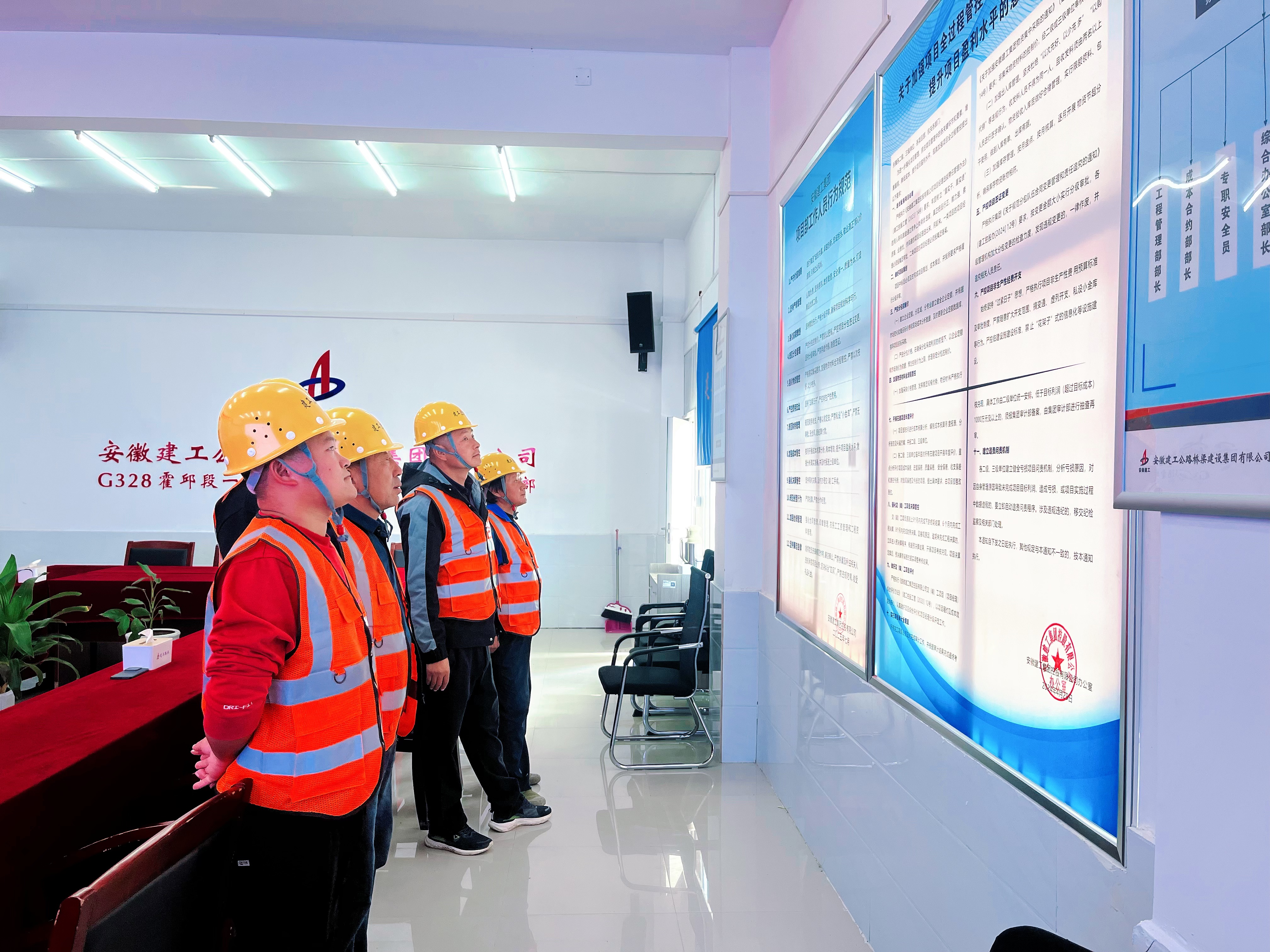 G328改建公路項(xiàng)目部系統(tǒng)整合集團(tuán)、公司近三年來各類重要制度文件近70篇匯總成冊(cè),搭配集團(tuán)印發(fā)的項(xiàng)目管理制度學(xué)習(xí)手冊(cè)推動(dòng)全員參與,全面學(xué)習(xí);統(tǒng)一規(guī)格規(guī)范上墻《項(xiàng)目部工作人員行為規(guī)范》《關(guān)于加強(qiáng)項(xiàng)目全過程管控 堵塞漏洞 降低成本 提升項(xiàng)目盈利水平的意見》等核心規(guī)章制度,實(shí)現(xiàn)學(xué)習(xí)內(nèi)容可視可及。