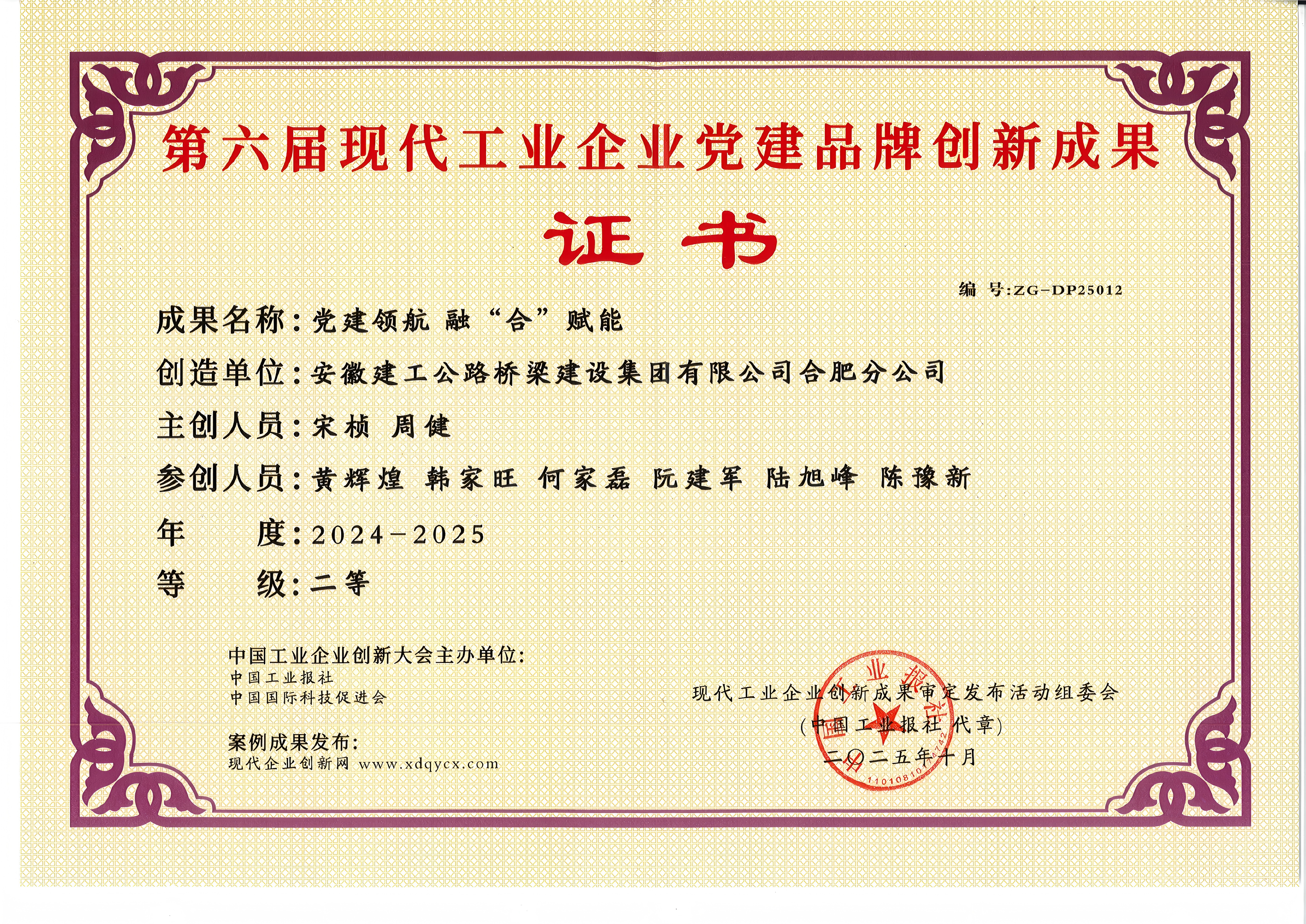近日,第六屆現(xiàn)代工業(yè)企業(yè)黨建品牌創(chuàng)新成果評選結(jié)果正式發(fā)布,合肥分公司傾力打造的“黨建領(lǐng)航 融‘合’賦能”黨建品牌,憑借鮮明的創(chuàng)建特色、扎實(shí)的實(shí)踐成效與突出的創(chuàng)新價(jià)值,成功榮獲二等成果。