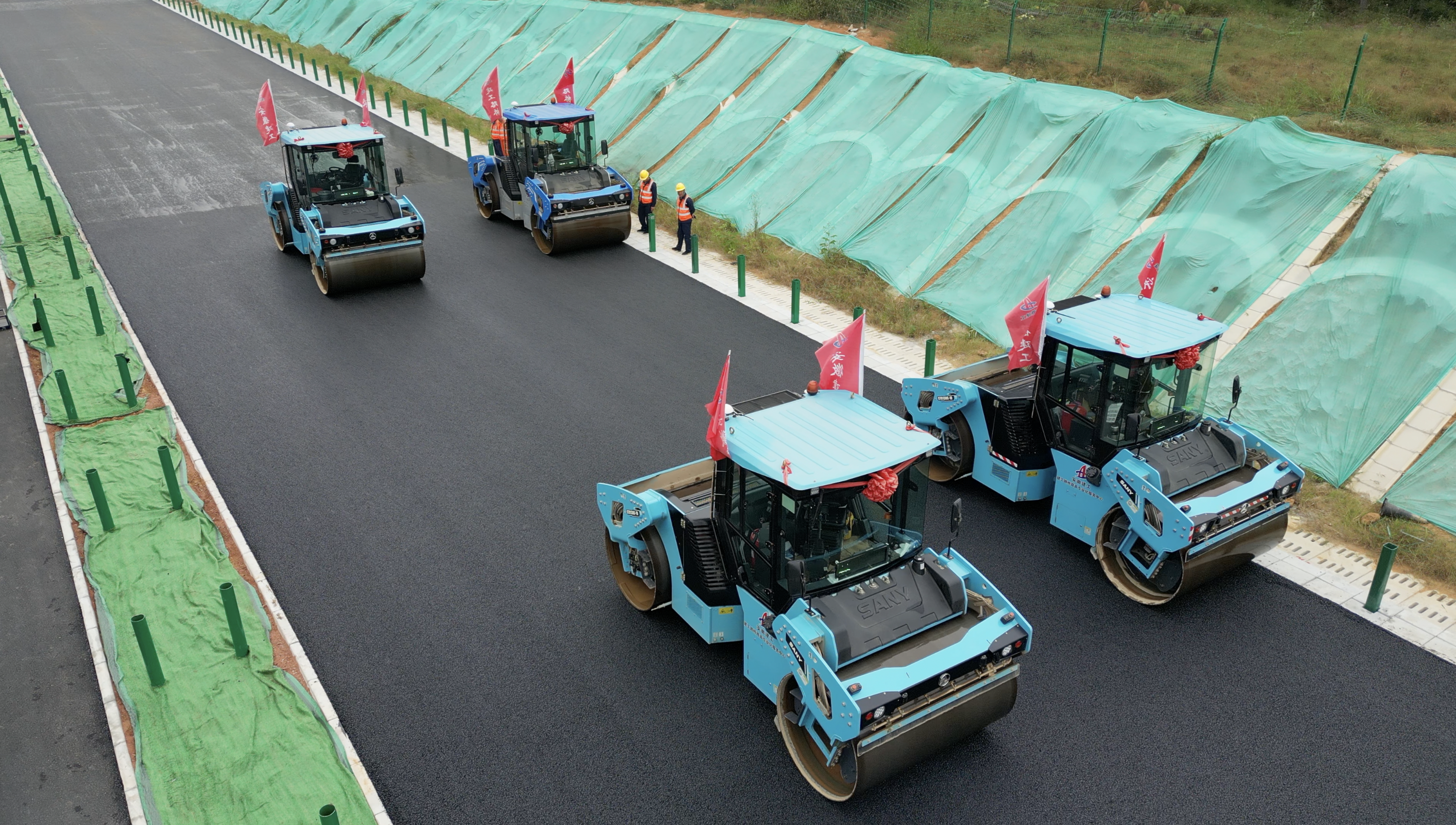 在徐淮阜高速、涇青高速等項(xiàng)目中,無人駕駛攤鋪碾壓技術(shù)的應(yīng)用顛覆傳統(tǒng)施工模式。該技術(shù)集成毫米波雷達(dá)三級制動(dòng)系統(tǒng),可精準(zhǔn)識別障礙物并即時(shí)響應(yīng),同時(shí)依托北斗高精度定位,實(shí)現(xiàn)多臺攤鋪機(jī)、壓路機(jī)的機(jī)群協(xié)同作業(yè),自動(dòng)優(yōu)化施工路徑與安全間距,施工效率提升40%以上。更關(guān)鍵的是,數(shù)字化控制確保瀝青混合料攤壓均勻性,路面壓實(shí)度達(dá)標(biāo)率、平整度均顯著提升。