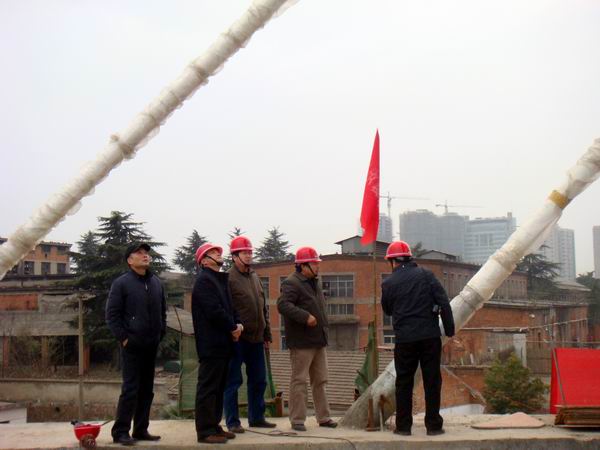 戴總一行參觀了大橋南岸主橋施工現(xiàn)場。在聽取了項目部江仲明經(jīng)理對前期工作和當前施工進展情況的匯報后,戴總對我部工作給予了高度評價,同時提出了更高的要求,希望我部繼續(xù)努力,再上新臺階。隨后,戴總一行還登上了主橋橋面,實地察看了正在緊張進行的主橋前支點掛藍施工,親切慰問了冒著嚴寒戰(zhàn)斗在一線的現(xiàn)場施工工人和技術(shù)人員,并就主橋完成后如何拆除前支點掛藍提出了指導性的方案。