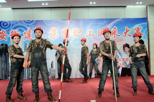 公司12名職工分別展示了三套服裝。第一套職業(yè)裝突破了傳統(tǒng)職業(yè)裝的局限,以背帶牛仔工裝褲為主,別具一格。再搭配安全帽、對講機(jī)等施工現(xiàn)場道具,將路橋的職業(yè)特性展示的淋漓盡致,在眾多參賽隊(duì)伍中獨(dú)樹一幟。第二套時裝,由六位女職工身著綴滿亮片的五彩短裙,在輕快動感的音樂下,充分展現(xiàn)了女職工的青春活力。第三套藝術(shù)裝,以晚禮服為主,四位男職工風(fēng)度翩翩,四位女職工婀娜多姿,凸顯了路橋兒女的別樣情懷。