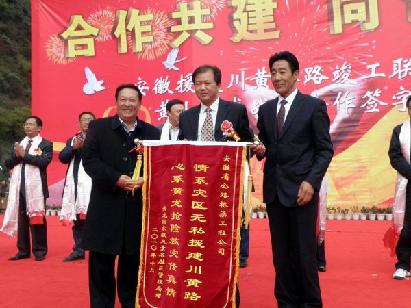 十月的松潘,金風送爽,喜事連連。10月14日,安徽援建川黃公路竣工聯(lián)歡會暨黃山黃龍戰(zhàn)略合作簽字儀式在美麗的黃龍風景區(qū)廣場隆重舉行。安徽省政府秘書長梁衛(wèi)國、省交通廳副廳長丁慶領及四川省、阿壩州、松潘縣各級領導出席儀式。我公司總經(jīng)理汪衛(wèi)東、黨委書記陳光磊以及漳黃02標項目經(jīng)理陳莘同志作為特邀嘉賓出席典禮。這標志著我安徽路橋?qū)谥г膳苏狞S公路建設任務的圓滿完成。