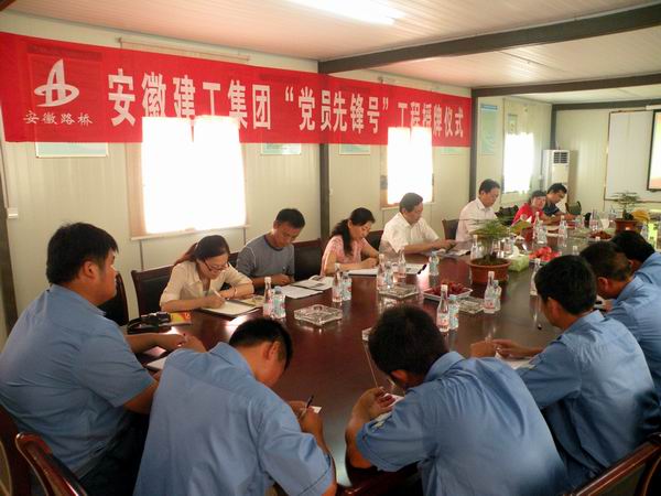 10點左右,李書記、牛書記一行來到項目會議室舉行“黨員先鋒號工程”授牌儀式。會上,公司、國內公司及市政分公司分別就爭創(chuàng)“黨員先鋒號工程”情況做了具體匯報。會上,李書記和牛書記分別作了重要講話。李書記就項目“黨員先鋒號工程”創(chuàng)建情況談了三點感受:一是創(chuàng)建工作務實,內容具體;二是創(chuàng)建工作主題突出,有自己的特色;三是創(chuàng)建隊伍有生機、有朝氣。就“黨員先鋒號工程”創(chuàng)建下步工作,李書記提出三點要求:一是創(chuàng)建工作要圍繞生產中心進行;二是要拓寬創(chuàng)建活動范圍,要逐步將活動延伸到合作隊伍和農民工中;三是創(chuàng)建工作要建立長效機制。牛書記指出公司市政項目“黨員先鋒號工程”創(chuàng)建工作開展的很好,很有特色,對項目在人文關懷方面的工作給予了充分肯定,對項目員工表現(xiàn)出的朝氣表示欣賞,并對安全生產、職工生活等方面工作做提出了具體要求。