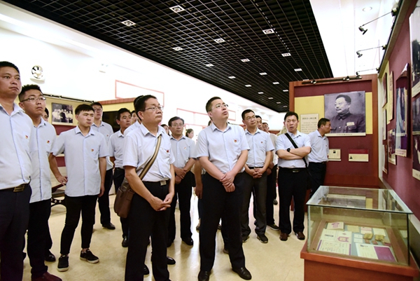 當(dāng)天,在大約200公里外的合肥市李克農(nóng)故居和渡江戰(zhàn)役紀(jì)念館,市政分公司黨總支和公司機關(guān)第一、第三黨支部正組織黨員接受革命傳統(tǒng)教育。在一幅幅歷史照片和一件件革命文物前,伴隨著解說員的細(xì)致講解,大家放慢腳步,細(xì)致看,認(rèn)真聽,凝神想,讓革命教育入腦入心。在莊重而響亮的集體入黨宣誓聲中,展現(xiàn)的是新時代安徽路橋黨員的激情、責(zé)任與擔(dān)當(dāng)。