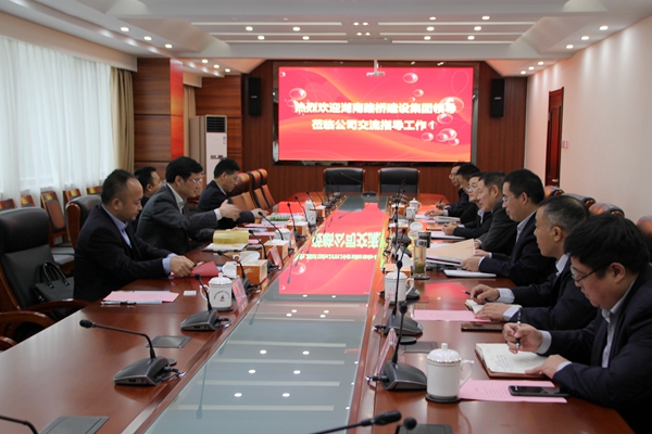 10月22日下午,湖南路橋建設集團有限責任公司黨委書記、董事長楊宏偉一行蒞臨公司交流工作,公司黨委書記、董事長孫學軍熱情接待了來訪客人一行。