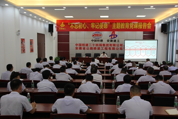 結(jié)合前期參加主題教育的學(xué)習(xí)感悟和調(diào)研情況,許克順以《踐行初心使命,勇于擔(dān)當作為,為新時代打造一流安徽建工持續(xù)貢獻力量》為題給大家講授了一堂專題教育黨課。他從牢記初心使命、強化擔(dān)當作為,正視問題差距、狠抓整改落實,勇于自我革命、永葆青春活力三個方面進行了講解,理論與實踐相結(jié)合,闡述了當前形勢下國有企業(yè)的初心和使命,并就如何打好防范化解重大風(fēng)險攻堅戰(zhàn)、生產(chǎn)經(jīng)營年度目標任務(wù)完成、助推品質(zhì)路橋卓越路橋建設(shè)進行了分析。他要求重視風(fēng)險防控,制定針對性防范化解措施,把學(xué)習(xí)教育、調(diào)查研究、檢視問題、整改落實貫穿于主題教育全過程,促進公司健康穩(wěn)定發(fā)展。