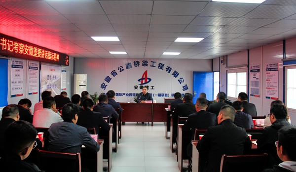 在全省上下深入學(xué)習(xí)宣傳貫徹習(xí)近平總書(shū)記考察安徽重要講話指示精神之際,按照集團(tuán)黨委統(tǒng)一部署要求,結(jié)合領(lǐng)導(dǎo)班子成員黨支部工作聯(lián)系點(diǎn)制度,10月16日下午,公司黨委副書(shū)記、總經(jīng)理錢(qián)申春深入道路分公司壽縣新橋產(chǎn)業(yè)園道路擴(kuò)展工程項(xiàng)目部宣講習(xí)近平總書(shū)記考察安徽重要講話指示精神。他強(qiáng)調(diào),要充分認(rèn)識(shí)習(xí)近平總書(shū)記考察安徽重要講話指示精神的重大意義,推動(dòng)學(xué)習(xí)宣傳貫徹工作走深走實(shí),確保習(xí)近平總書(shū)記重要講話精神在項(xiàng)目一線得到全面貫徹落實(shí),進(jìn)而轉(zhuǎn)化為推動(dòng)項(xiàng)目生產(chǎn)經(jīng)營(yíng)管理的強(qiáng)大動(dòng)力和生動(dòng)實(shí)踐。