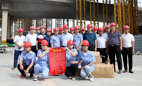 7月11日下午,中國(guó)海員建設(shè)工會(huì)分黨組成員、副主席武建光一行到暢通二環(huán)(西南環(huán))項(xiàng)目看望慰問(wèn)奮戰(zhàn)在項(xiàng)目一線的職工,并送來(lái)了綠豆、白糖、毛巾等防暑降溫物品。安徽省建設(shè)建材工會(huì)(文明辦)主任程德旺,公司黨委委員、副總經(jīng)理任杰,公司工會(huì)主席楊建強(qiáng)等陪同。