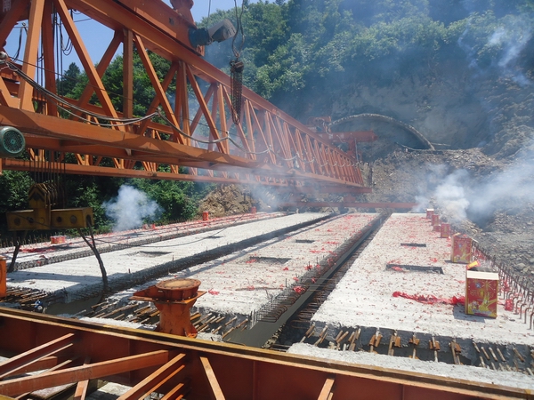 寧績07標(biāo)成功架設(shè)最后一片箱梁 發(fā)布時(shí)間:2013年06月03日 來源:寧績07標(biāo) 發(fā)布人: 作者:衛(wèi)驥午 瀏覽:2917次 6月3日上午10時(shí)58分,伴隨著一陣陣響徹山谷的鞭炮聲,寧績07標(biāo)項(xiàng)目最后一片箱梁平穩(wěn)準(zhǔn)確地架設(shè)到位。至此該項(xiàng)目箱梁全部架設(shè)完成。