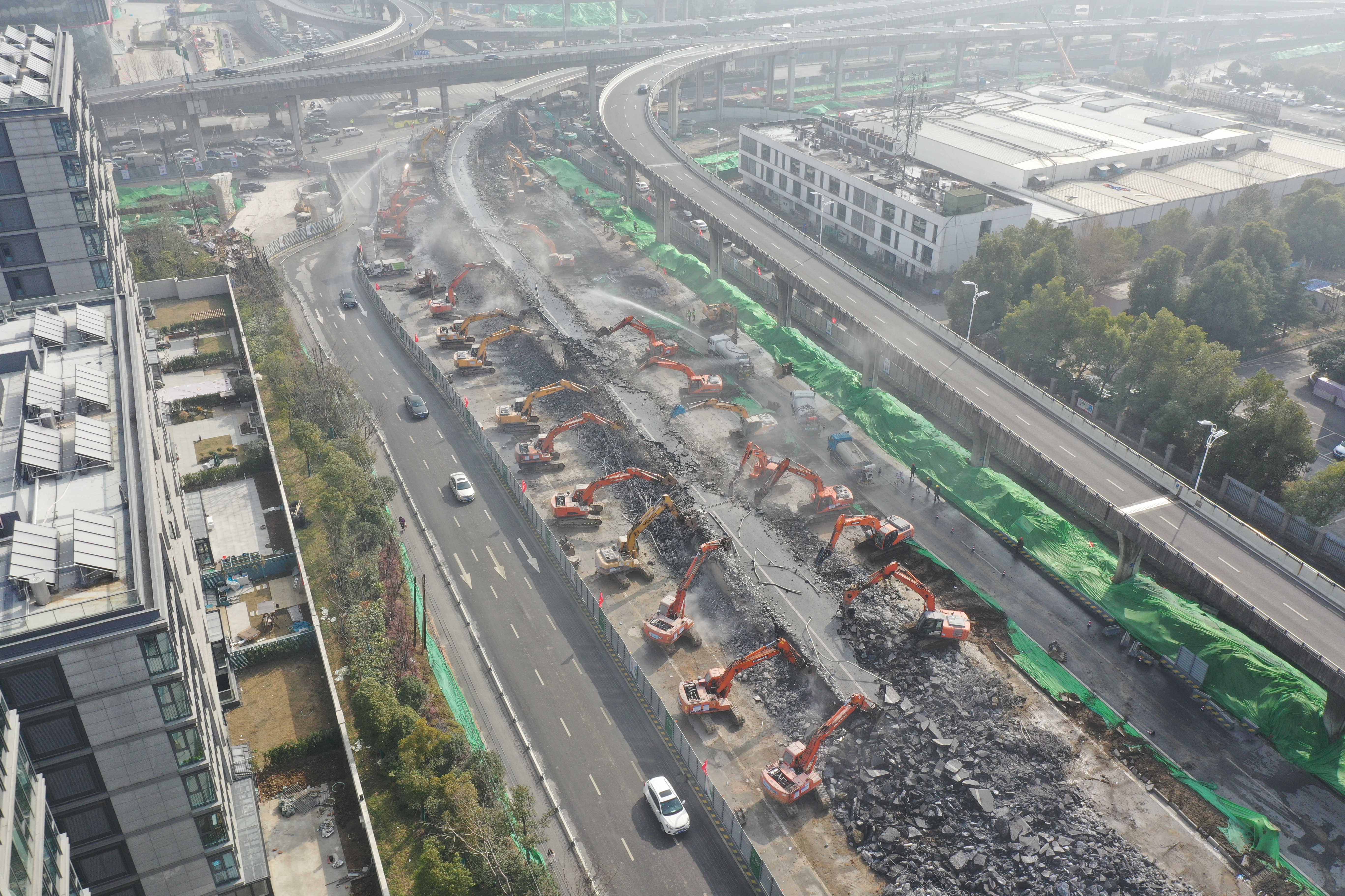 2021年2月3日,安徽建工路橋僅用15小時完成原計劃兩天的合肥金寨路高架南向西至南二環(huán)左轉(zhuǎn)匝道拆除任務(wù)。