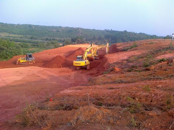 我部施工標(biāo)段全長28公里,項(xiàng)目部將在永豐和吉水兩縣分別設(shè)立一座水穩(wěn)拌合站及一座瀝青拌和站。按照業(yè)主要求,8月份完成水穩(wěn)拌合站架設(shè),10月份完成瀝青拌合站架設(shè)。項(xiàng)目部已經(jīng)定出倒排工期計劃表。目前在永豐縣的“一白一黑”兩站已經(jīng)確定,水穩(wěn)拌和站已具備架設(shè)及備料條件。吉水縣我標(biāo)段所處位置多為山地,且大部分為公益林,經(jīng)過慎重選擇后,選定了一塊約50畝的山林地作為兩站場地。但此處土方量較大,場地整平土方量經(jīng)測算約8萬方。項(xiàng)目部將充分利用晴好天氣,加班加點(diǎn),計劃10個工作日完成場地整平。